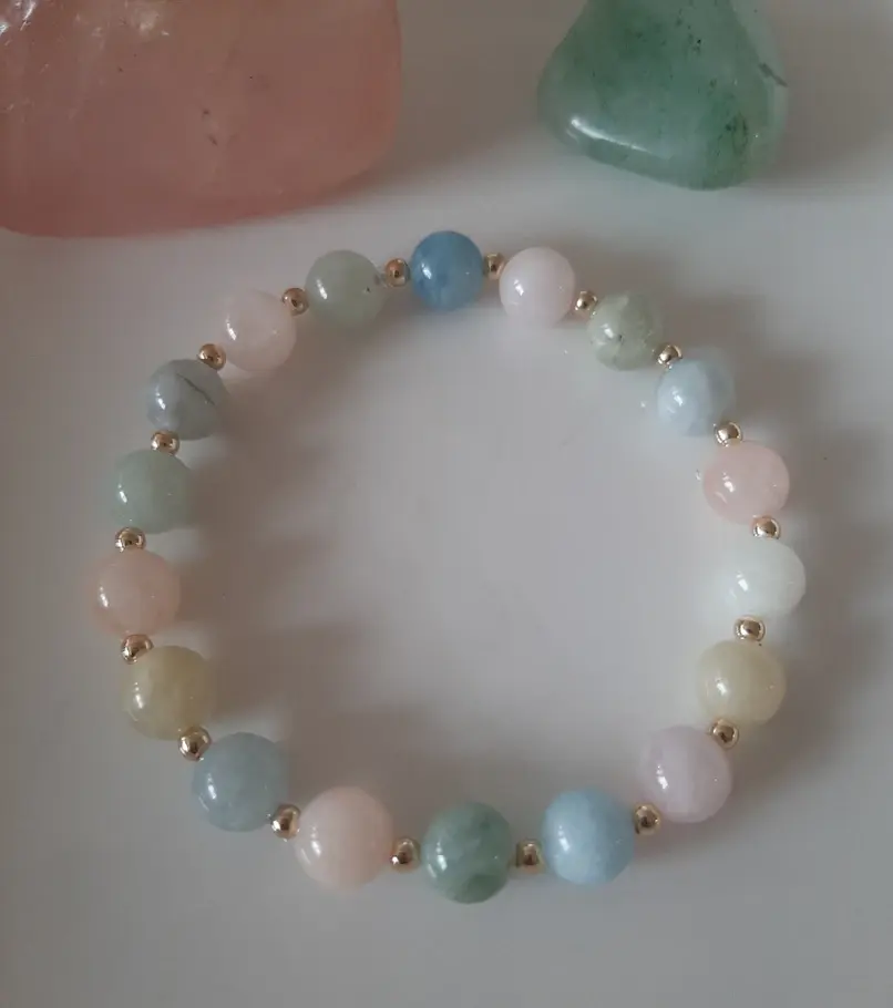 This powerful, heart-opening bracelet is a high-frequency blend of Mixed Morganite and Mixed Beryl, working together like a divine magnet for love, healing, and soulful connection. Each color has been intuitively chosen to awaken your aura, open your heart, and call in your soulmate on a cosmic frequency.